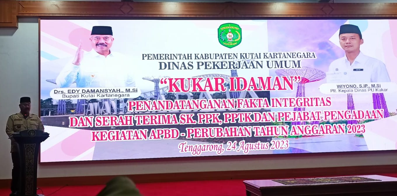 Dinas PU Kukar Penandatanganan Fakta Integritas Kegiatan dan Serah Terima SK PPK, PPTK, Pejabat Pengadaan Kegiatan APBD-Perubahan T.A. 2023